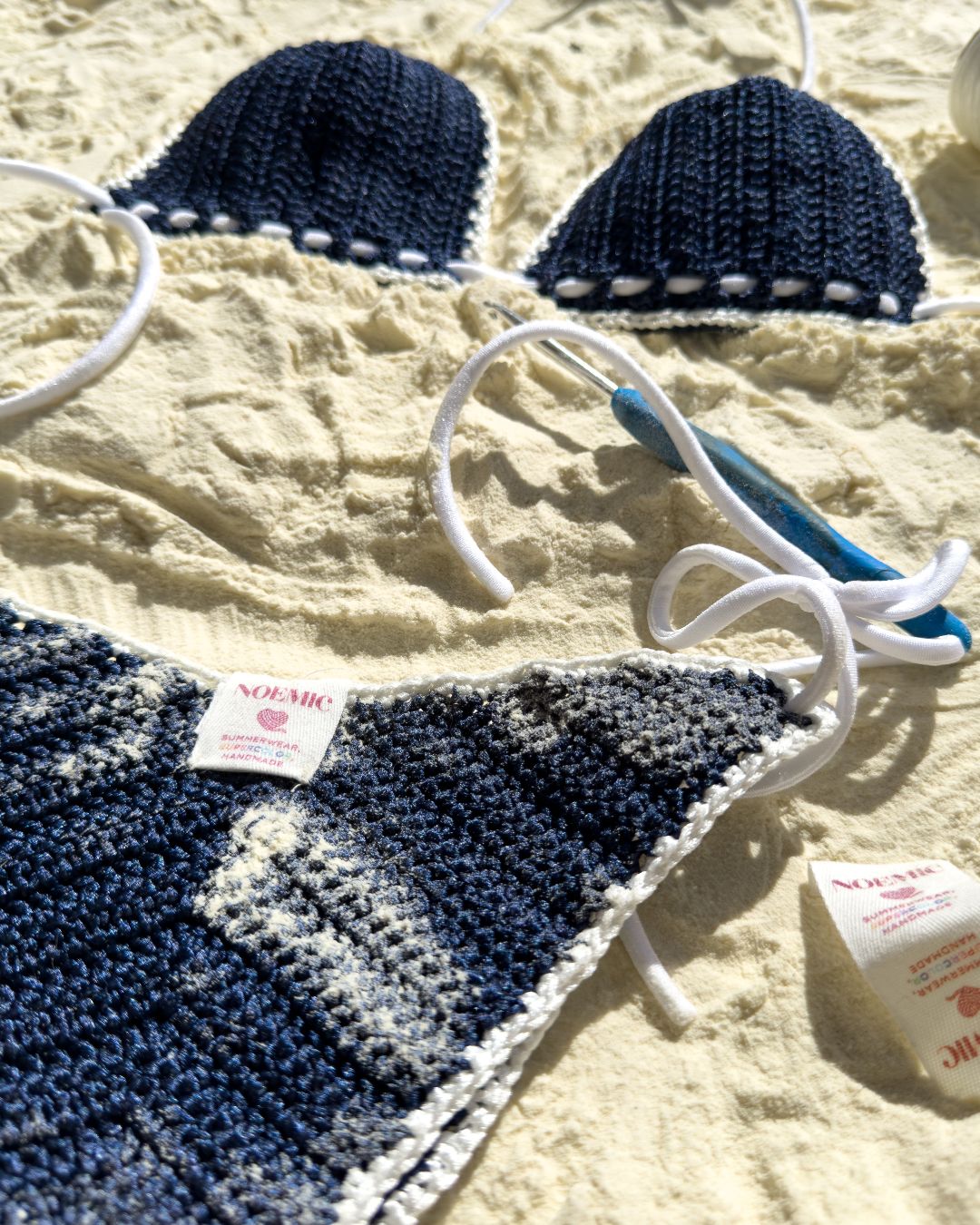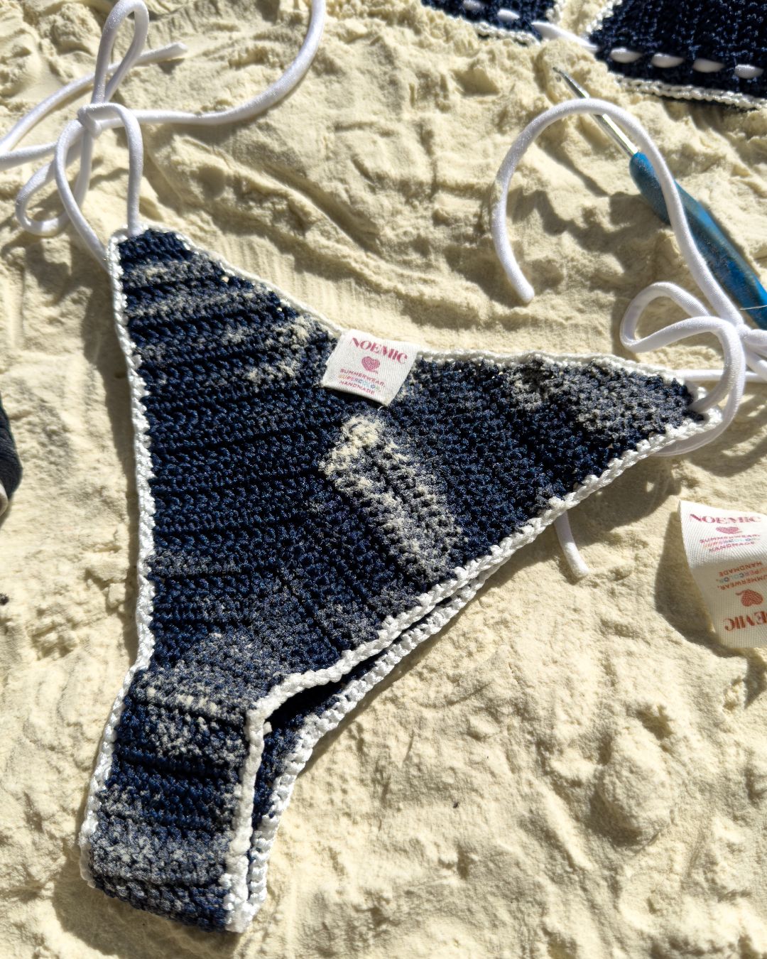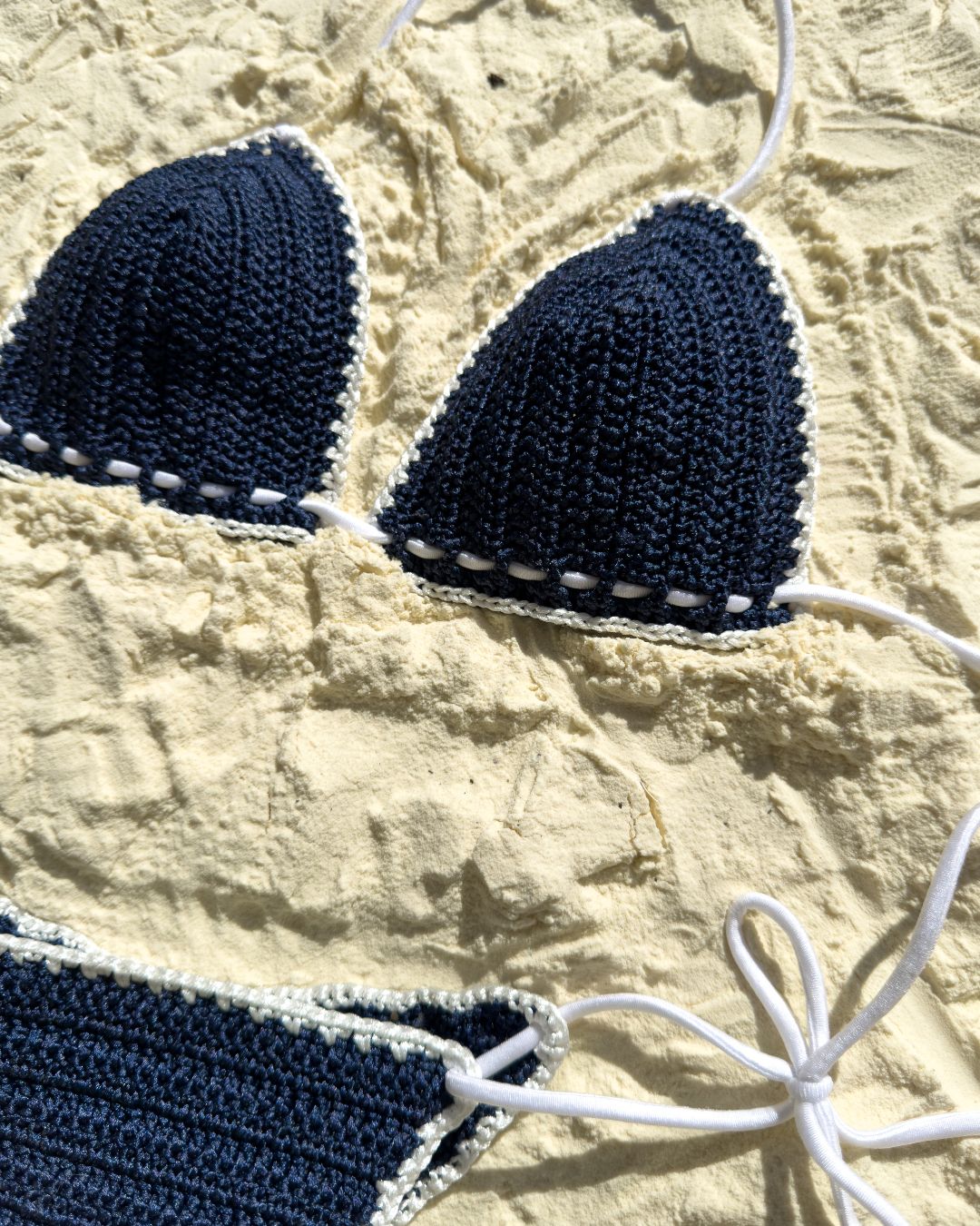Materiale: filato Borgo De Pazzi Firenze, made in Italy, in poliestere riciclato certificato GRS con componente elastico. Resistente a sole, cloro e acqua, durevole e luminoso. Slip versatile, coppa sostenitiva e laccetti morbidi. Perfetto per tutta la stagione!