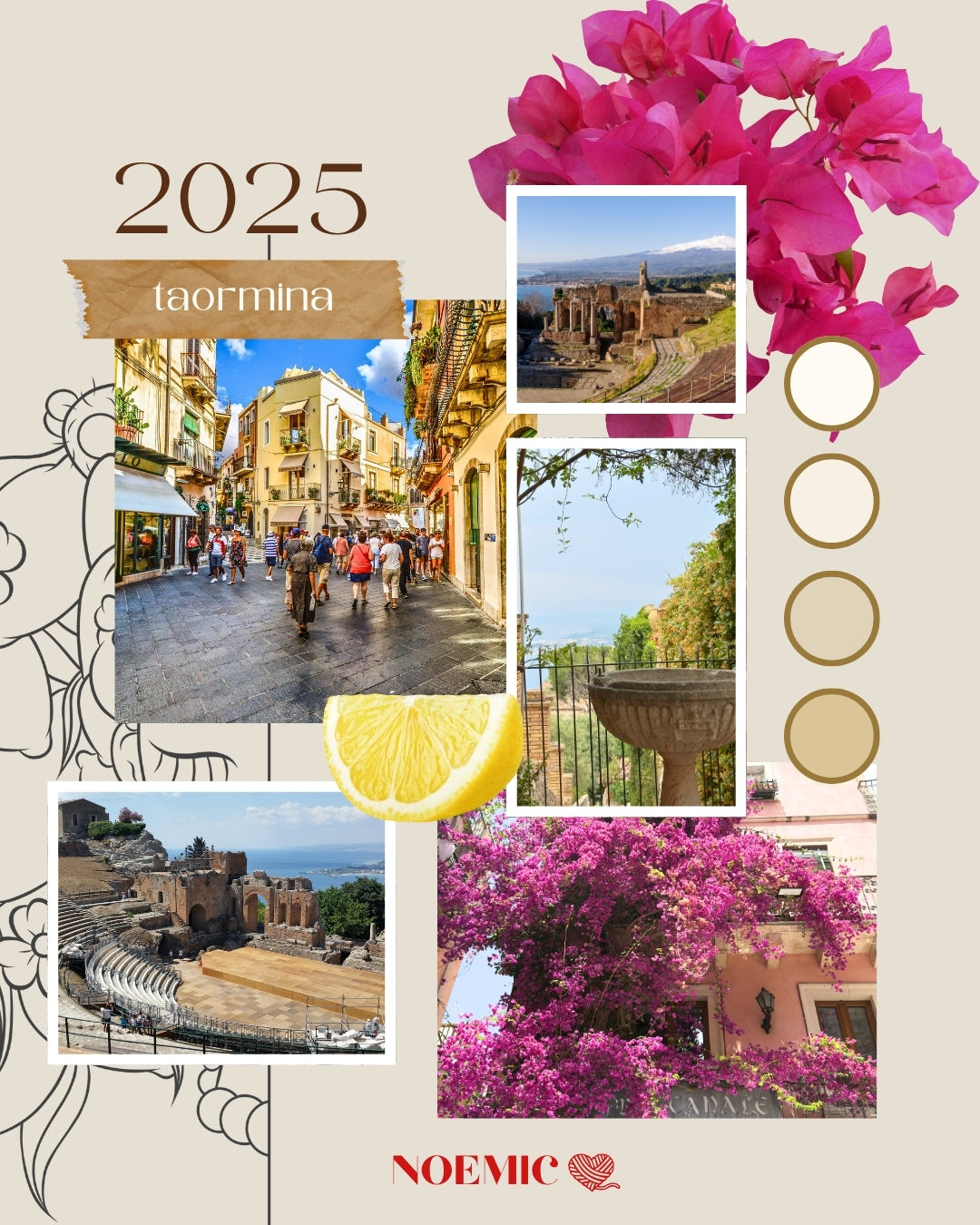 Ispirato ai materiali delle chiese barocche di Taormina come la pietra calcarea locale, ogni cappellino richiama quelle nuances naturali e rasserenanti, un omaggio alla pietra viva che decora le facciate sacre.